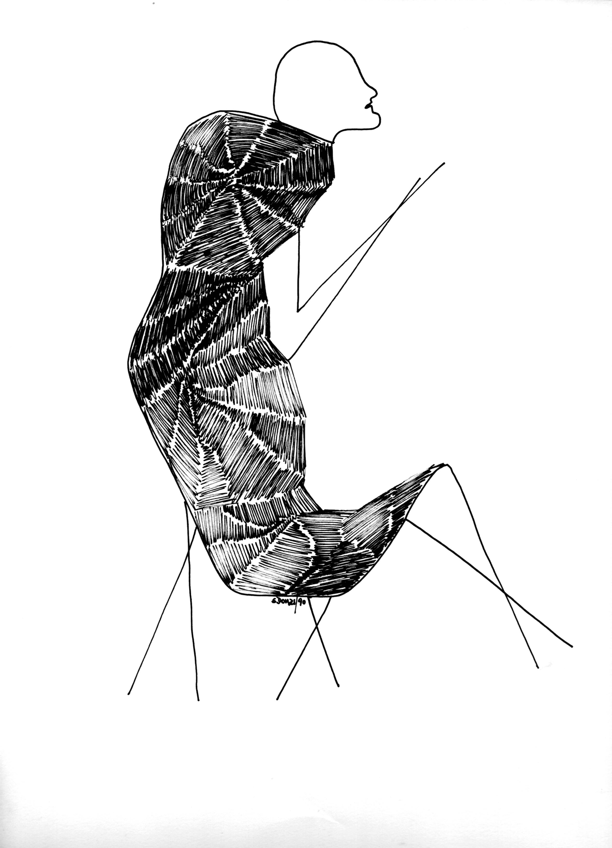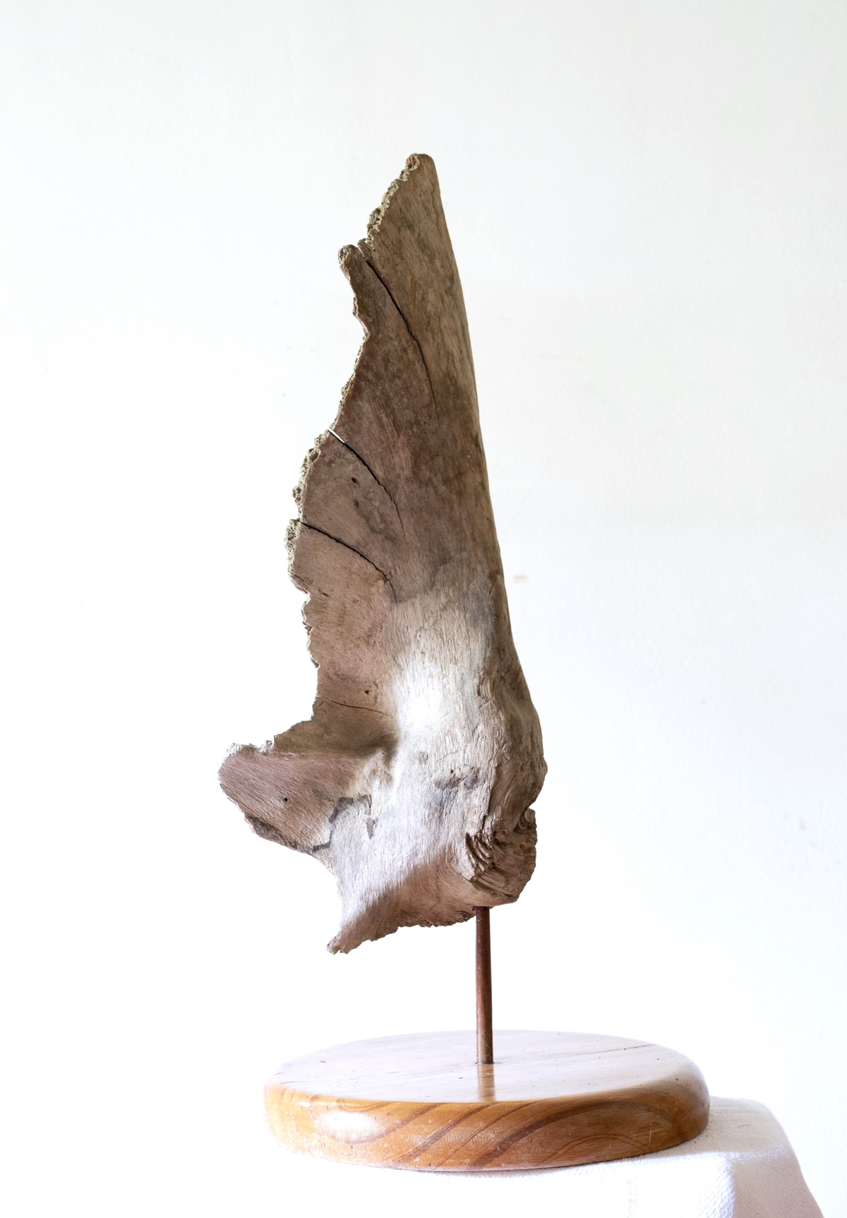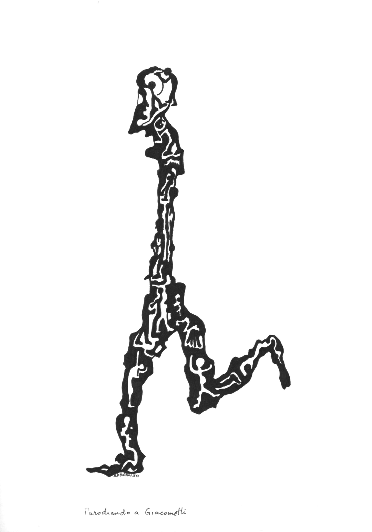 Su fusión con la naturaleza se manifiesta claramente en el conjunto de obras que titulamos “Figuras encontradas”. En estas esculturas Solum se coloca en el lugar de un facilitador expresivo de un escultor previo – que en este caso sería Dios, o la naturaleza misma metamorfoseada por el paso del tiempo. Cada una de estas esculturas alude a una forma reconocible cuando imbuida por nuestro “imaginario humano”, y sin embargo no deja de ser un pedazo de rama o tronco u algo similar de madera encontrado a la deriva en algún paseo por la playa o el campo. A la vez, contienen y logran evocar una potencia expresiva en muchos casos verdaderamente conmovedora: una bailarina que nos recuerda los pasteles de Degas, un tríptico de “humanoides” sin rostros ni identidad acudiendo a algo sublime; un hombre bailando con un árbol como Frank Sinatra en Singing in the Rain, una reina o faraón sentada en su trono silenciado por los siglos, el rostro de Munch sin cuerpo y sin boca, un atleta que corre con los brazos abiertos…