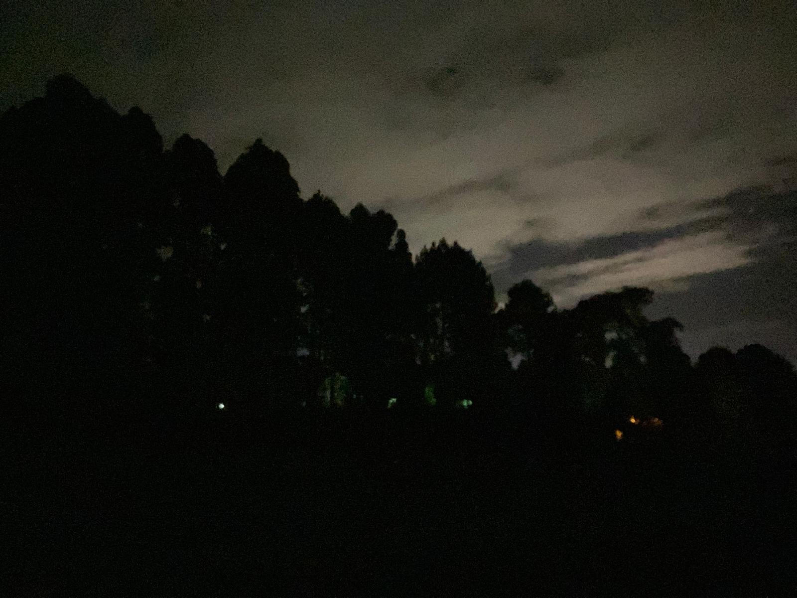 Los gritos que llegan desde la cárcel resuenan en la distancia y los perros responden. Grillos y ranas sostienen el fondo mientras la noche termina de instalarse.