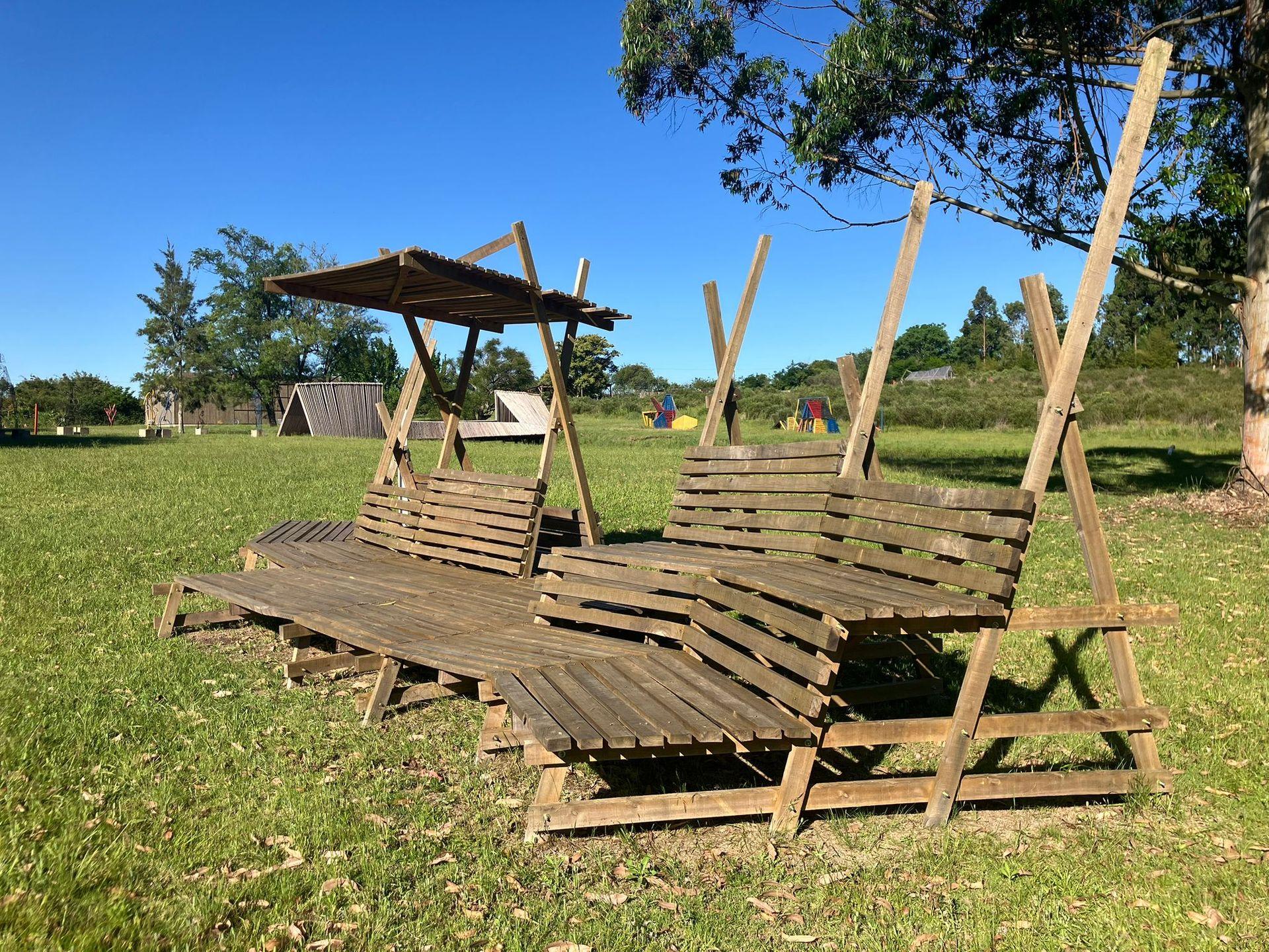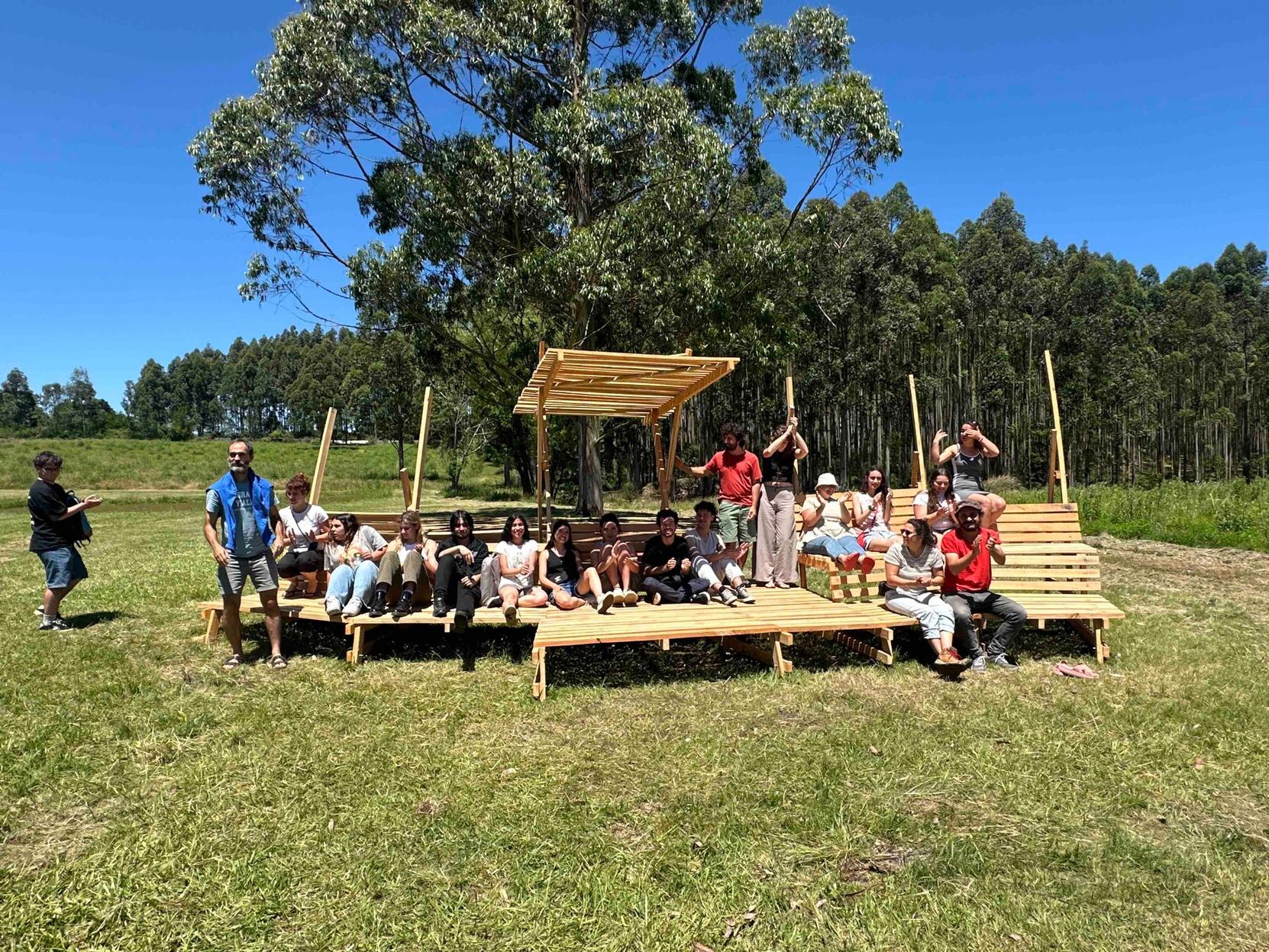 Estancia es una instalación colaborativa que promueve la integración entre arte, comunidad y reinserción social. Concebida con una estructura modular adaptable, invita al encuentro, la reflexión y el trabajo conjunto, funcionando como un espacio abierto dentro del Parque Escultórico del MUMA.